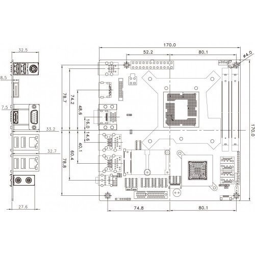 Плата KINO-AQ170 Mini-ITX Motherboard supports 14nm LGA1151 Intel® Skylake CPU Intel® Q170,HDMI2.0/DP/VGA, SATA, Dual Intel®GbE, USB3.0,PCIE mini, HD audio and RoHS